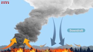 L’energia que allibera un incendi d’aquestes característiques és tan gran que pot arribar a generar una columna vertical (anomenada pirocúmul o pirocumulonimbs), que col·lapsa amb la baixada de les temperatures generant un comportament del foc extremadament ràpid (vegeu imatge 1). Aquestes columnes poden arribar a fer fins a 15 km d’alçada, fins que es desplomen i provoquen incendis forestals a diversos punts al mateix temps (el que hem anomenat anteriorment tempestes de foc).