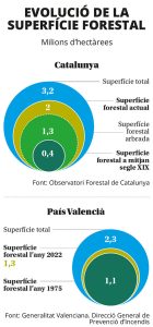 Evolució de la superfície vegetal a Catalunya. Font: Observatori Forestal de Catalunya